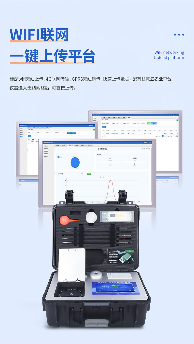 13、配有智慧云農(nóng)業(yè)平臺(tái),儀器連入無(wú)線網(wǎng)絡(luò)后,可將檢測(cè)數(shù)據(jù)可選擇性或批量無(wú)線上傳,方便用戶進(jìn)行數(shù)據(jù)管理和長(zhǎng)期分析。
