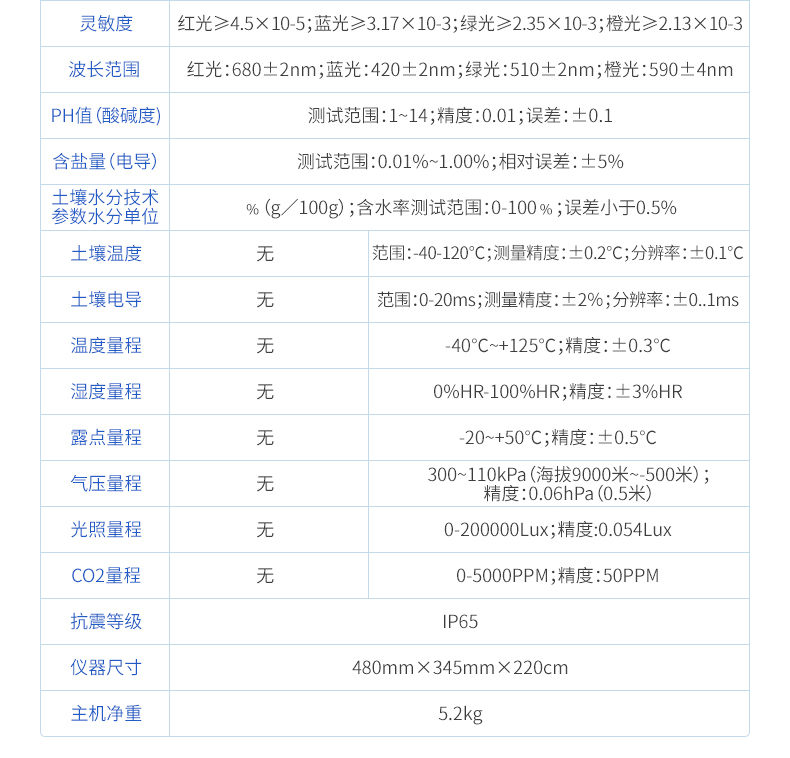 12.土壤溫度:范圍:-40-120℃;測(cè)量精度:±0.2℃;分辨率:±0.1℃