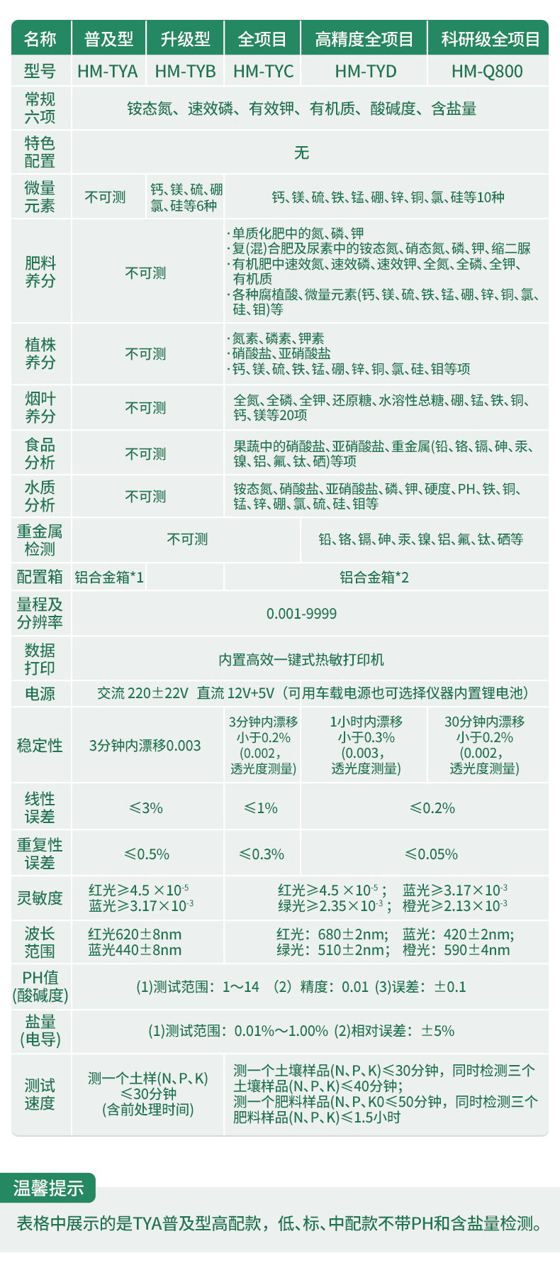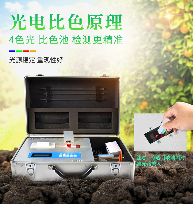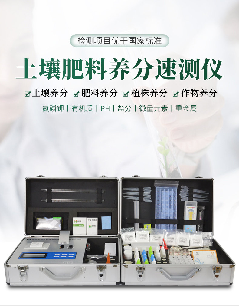 配套齊全:該儀器集藥、器、儀為一體,攜帶方便,相當(dāng)于一個小型實(shí)驗(yàn)室。適于農(nóng)業(yè)服務(wù)部門或農(nóng)資經(jīng)銷商、肥料廠商測土施肥和鑒別肥料真假。