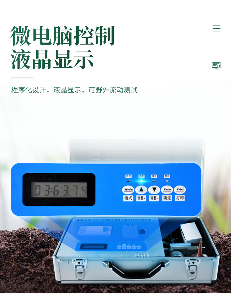 測一個土壤樣品(N、P、K)≤30分鐘,同時檢測三個土壤樣品(N、P、K)≤40分鐘;